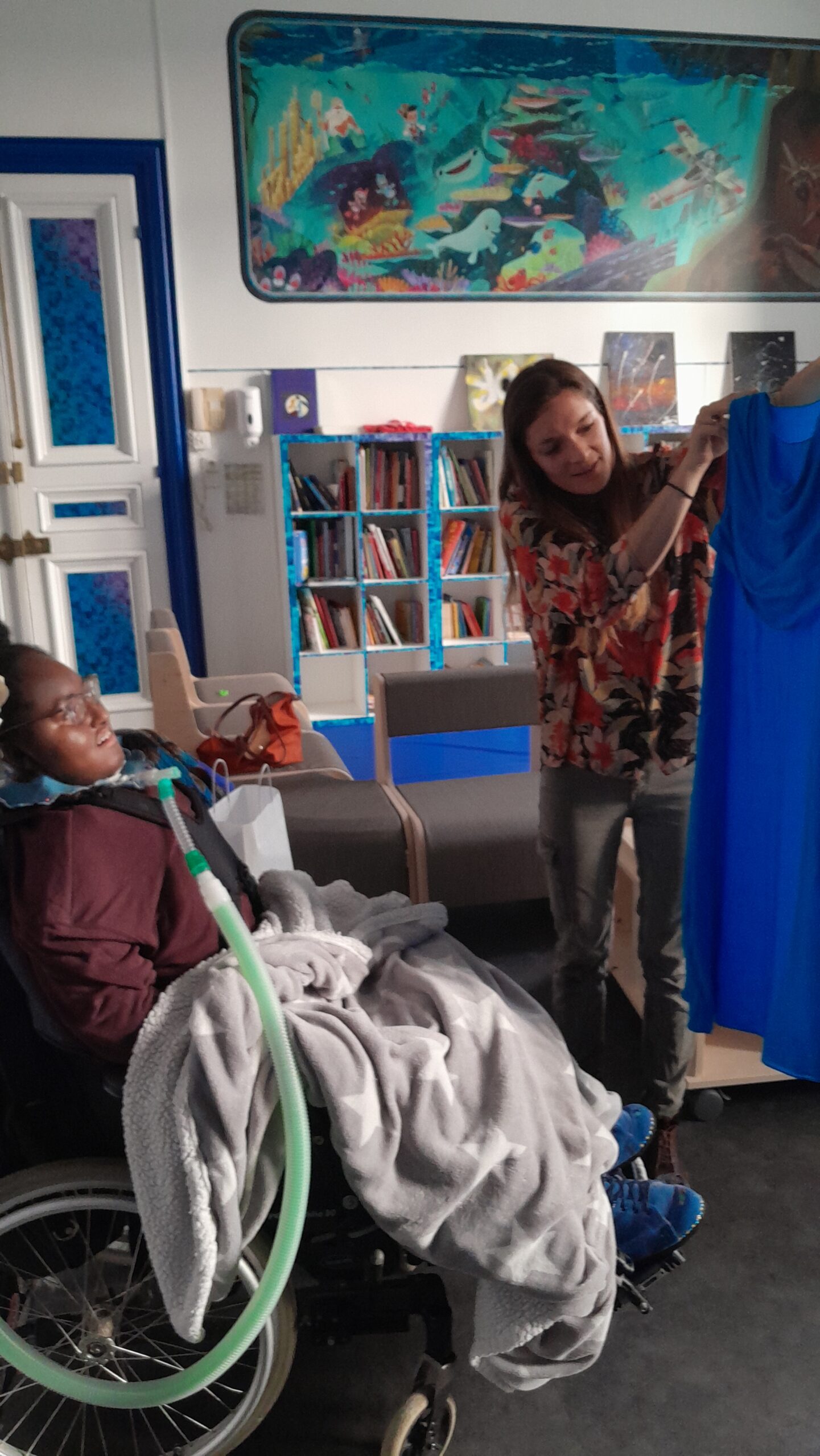 Ce projet s’est concrétisé par la réalisation d’une robe sur mesure pour l’une de nos patientes, imaginée en lien avec ses goûts, ses envies et ses besoins spécifiques. Une expérience valorisante, porteuse de sens, qui a permis de renforcer la confiance en soi et l’expression personnelle.
